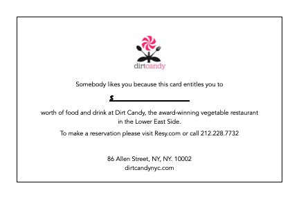 The greatest gift ever gifted: Dirt Candy gift certificates!
